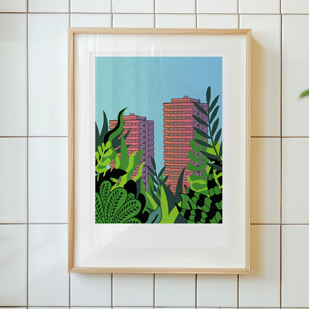 Happy Hour PrintsTower Blocks and green inspired by the views of South London